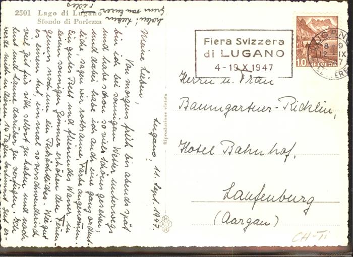 71292611 alte Postkarte Lago di Lugano TI Sfondo di Porlezza postalisch gelaufen gute Erhaltung KatCode: 11470210665262