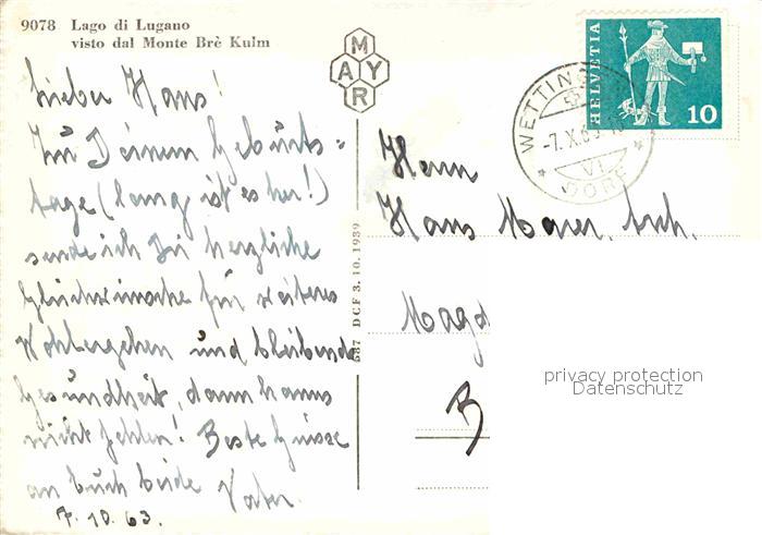 72768864 alte Postkarte Lago di Lugano TI Visto dal Monte Bre Kulm postalisch gelaufen Erhaltung siehe scans [LiesaD40] KatCode: 11470210665262