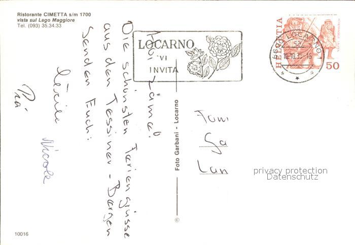 old postcard Lago Maggiore Cardada Cimetta Ristorante Gastraum Seilbahn Drachenflieger postalisch gelaufen Erhaltung siehe scans
