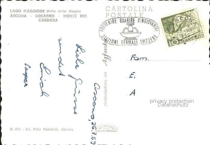 alte Postkarte Lago Maggiore Delta della Maggia Ascona Locarno Cardada Fliegeraufnahme postalisch gelaufen Erhaltung siehe scans