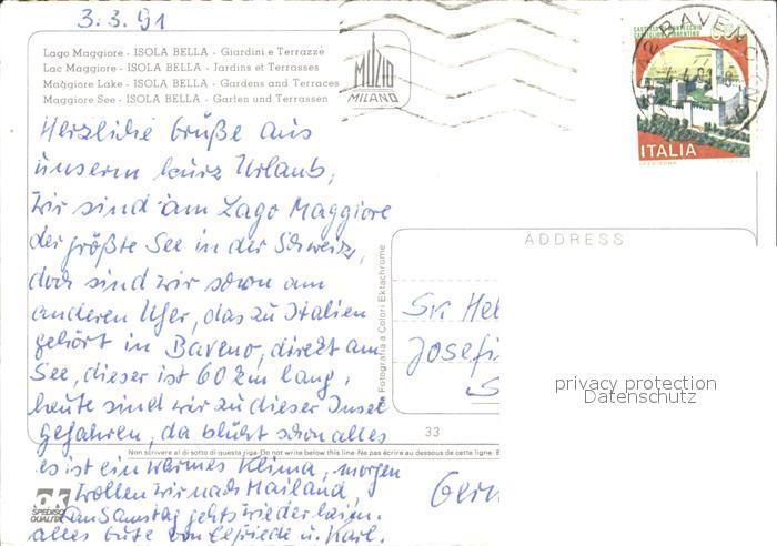 old postcard Lago Maggiore Giardini e terazze isdola bella postalisch gelaufen Erhaltung siehe scans