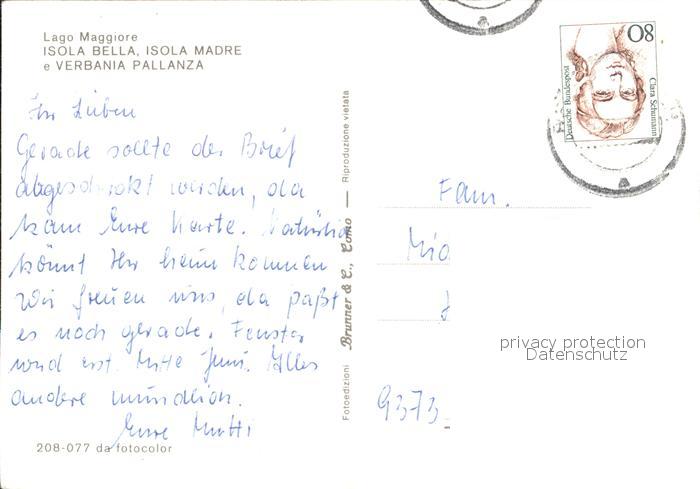 old postcard Lago Maggiore Isola Bella Isola Madre e Verbania Pallanza Palmen postalisch gelaufen Erhaltung siehe scans