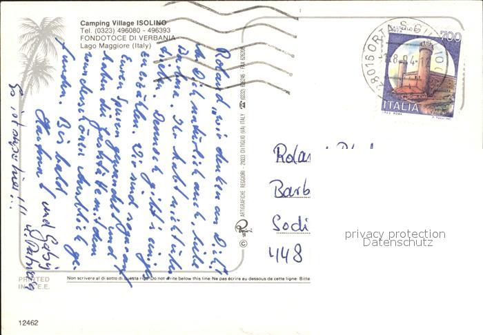 old postcard Lago Maggiore Isolino Camping Village postalisch gelaufen Erhaltung siehe scans