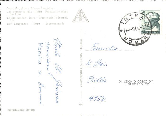 old postcard Lago Maggiore Langensee Intra Seepromenade postalisch gelaufen