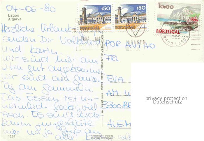 74038299 old postcard Lagos Algarve Faro PT Algarve Fliegeraufnahme postalisch gelaufen Erhaltung siehe scans [WerneD78] KatCode: 11420