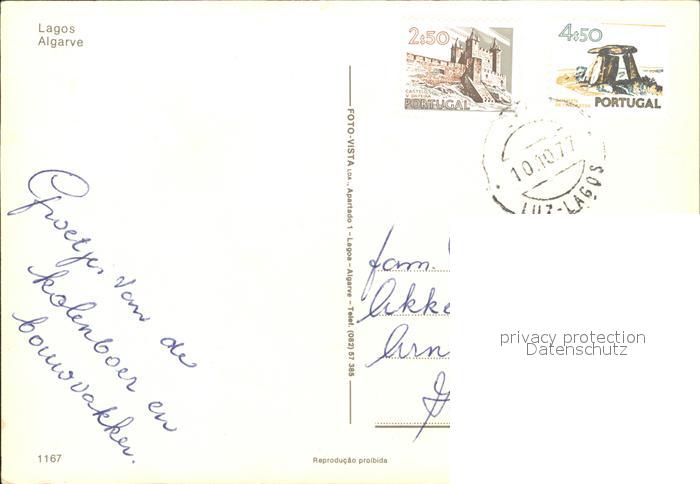 old postcard Lagos Algarve Portugal Algarve Hafen Boote Strand postalisch gelaufen Erhaltung siehe scans