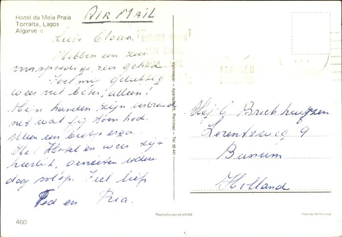 old postcard Lagos Algarve Portugal Hotel da Meia Praia Torralta Swimming Pool Restaurant postalisch gelaufen Erhaltung siehe scans
