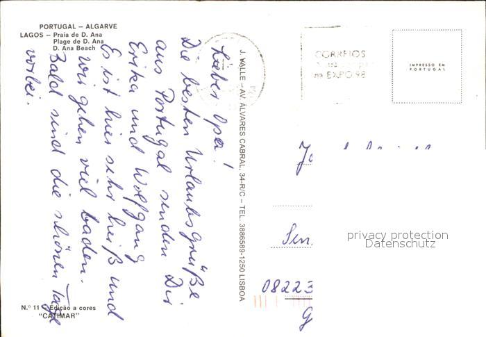 old postcard Lagos Algarve Portugal Praia de D. Ana postalisch gelaufen Erhaltung siehe scans