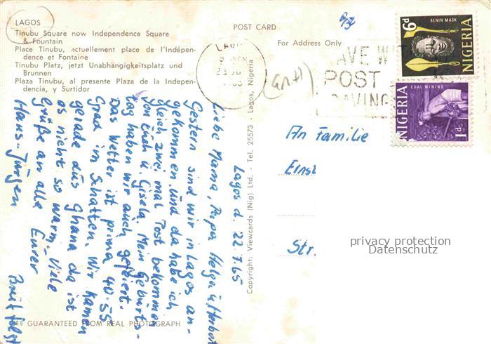 74153125 old postcard Lagos Nigeria Tinubu Square now Independence Square and Fountaine postalisch gelaufen Erhaltung siehe scans [WerneD78] KatCode: 18360