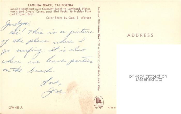 72938702 Laguna Beach Fliegeraufnahme postalisch nicht gelaufen Erhaltung siehe scans [WerneD78] KatCode: 14140050000000