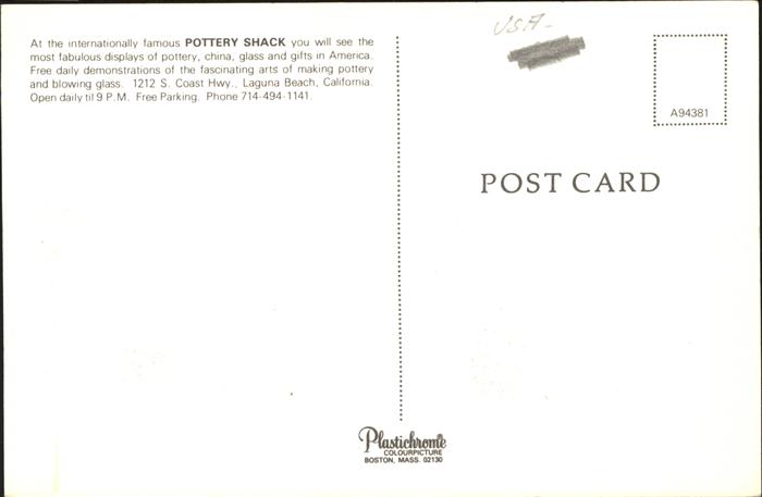 11491875 Laguna Beach Pottery Shack postalisch nicht gelaufen Erhaltung siehe scans KatCode: 14140050000000