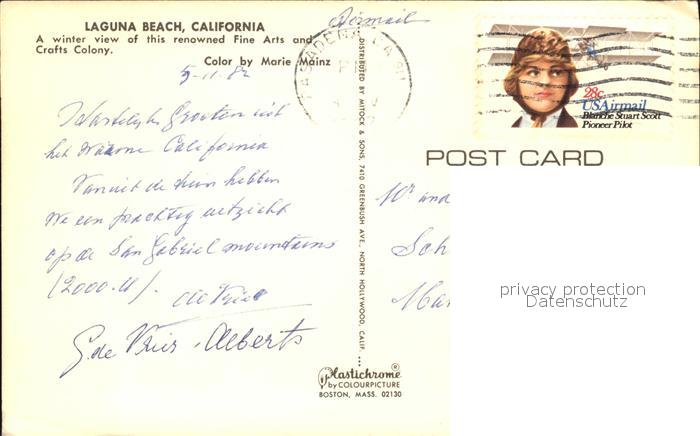 72503372 old postcard Laguna Beach Teilansicht postalisch gelaufen Erhaltung siehe scans KatCode: 14140050000000