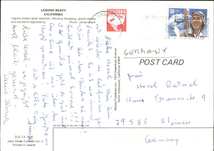 71048480 old postcard Laguna Beach postalisch gelaufen KatCode: 14140050000000