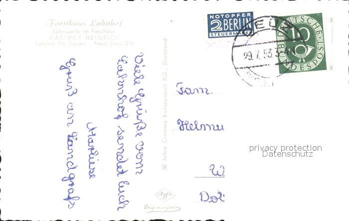 72096628 alte Postkarte Lahnhof Forsthaus Lahnhof postalisch gelaufen Erhaltung siehe scans KatCode: 11110005970032