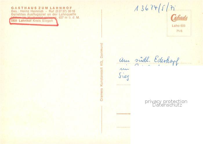 73726234 Lahnhof Gasthaus zum Lahnhof Gaststube Landschaftspanorama Pferde postalisch nicht gelaufen Erhaltung siehe scans [FriedD77] KatCode: 11110005970032