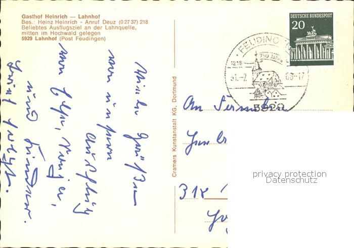 71924876 alte Postkarte Lahnhof Gasthof Heinrich postalisch gelaufen Erhaltung siehe scans KatCode: 11110005970032