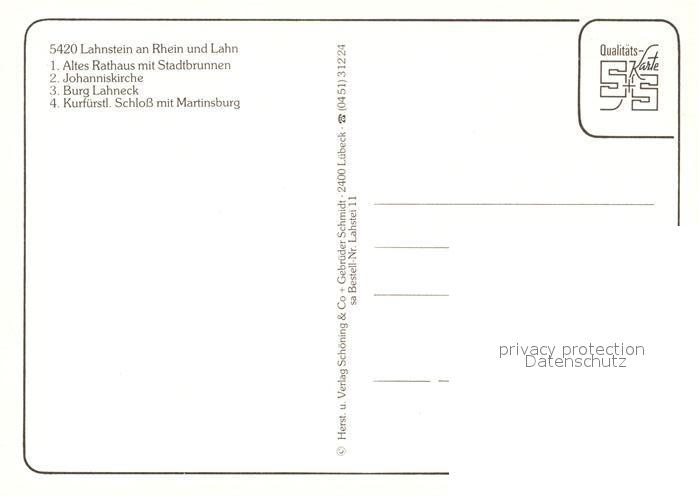 73199005 Lahnstein Altes Rathaus Johanniskirche Burg Lahneck postalisch nicht gelaufen Erhaltung siehe scans [NatalD47] KatCode: 11110007141075