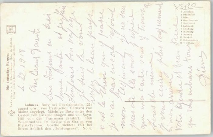 40264012 Lahnstein Burg Lahneck Künstlerkarte KatCode 11110007141075