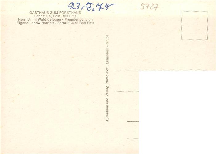 73872442 Lahnstein Gasthaus zum Forsthaus postalisch nicht gelaufen Erhaltung siehe scans [FriedD77] KatCode: 11110007141075
