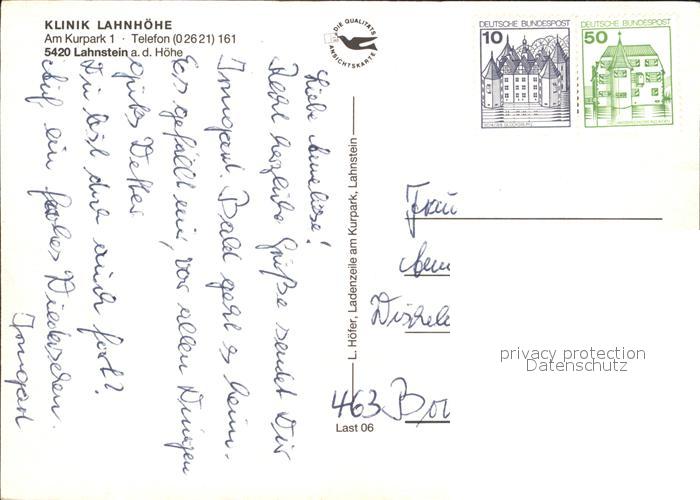 72583490 Lahnstein Klinik Lahnhoehe postalisch nicht gelaufen Erhaltung siehe scans [LiesaD40] KatCode: 11110007141075