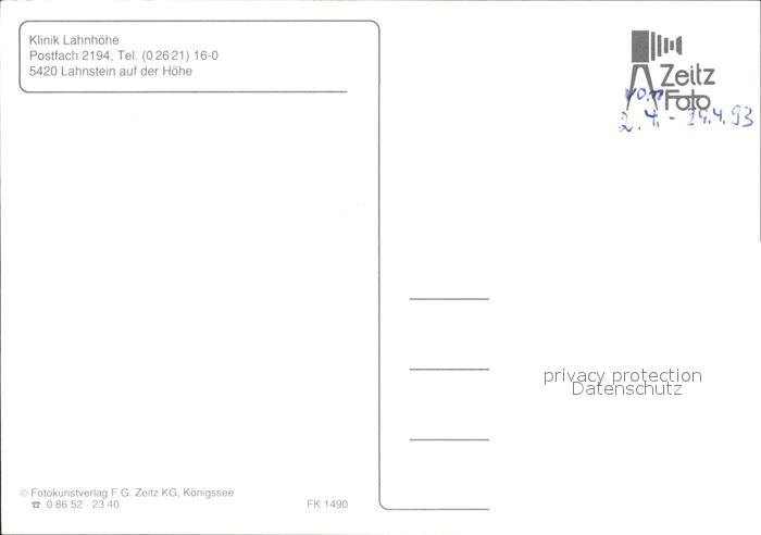 72176754 Lahnstein Klinik Lahnhoehe postalisch nicht gelaufen Erhaltung siehe scans KatCode: 11110007141075