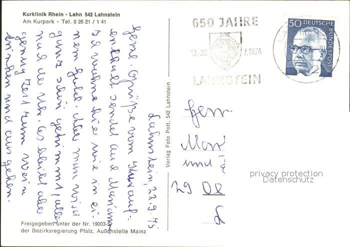 71984142 alte Postkarte Lahnstein Kurklinik Rhein Lahn Kurpark postalisch gelaufen KatCode: 11110007141075