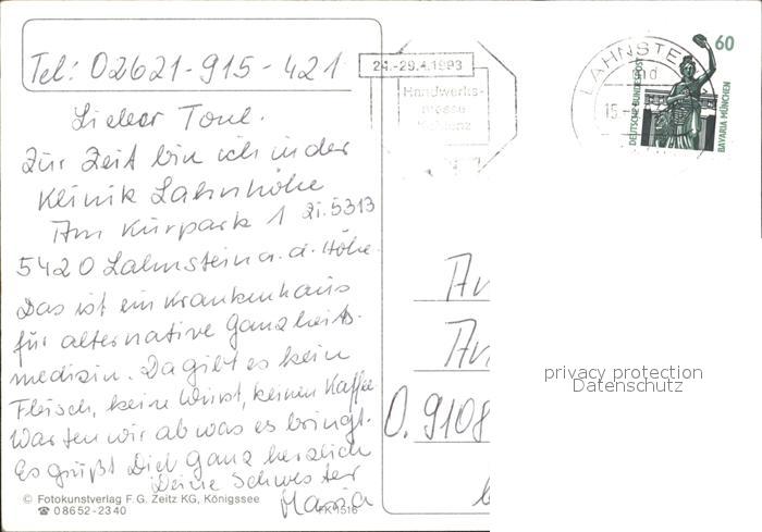 72456270 alte Postkarte Lahnstein Kurzentum Rhein Lahn postalisch gelaufen Erhaltung siehe scans KatCode: 11110007141075