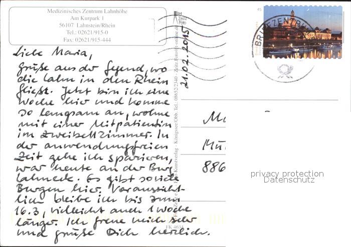 72590290 alte Postkarte Lahnstein Medizinisches Zentrum postalisch gelaufen Erhaltung siehe scans [AntonD74] KatCode: 11110007141075