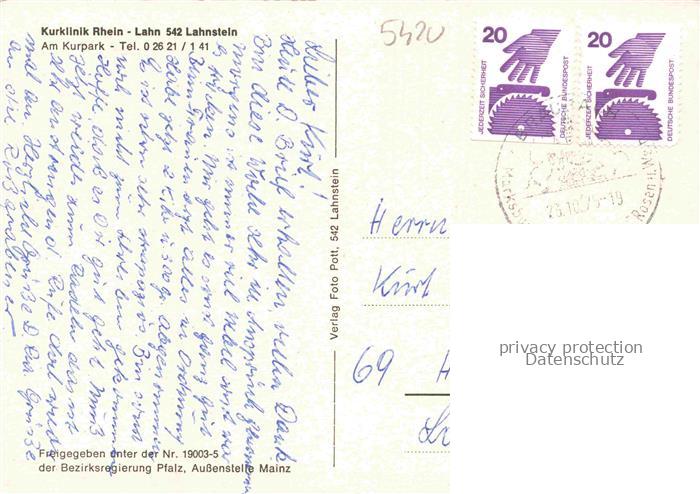 74040981 Lahnstein Rheinland-Pfalz Kurklinik Rhein Lahn Fliegeraufnahme postalisch gelaufen Erhaltung siehe scans [WerneD78] alte Postkarte Wern Katcode 11110007141075