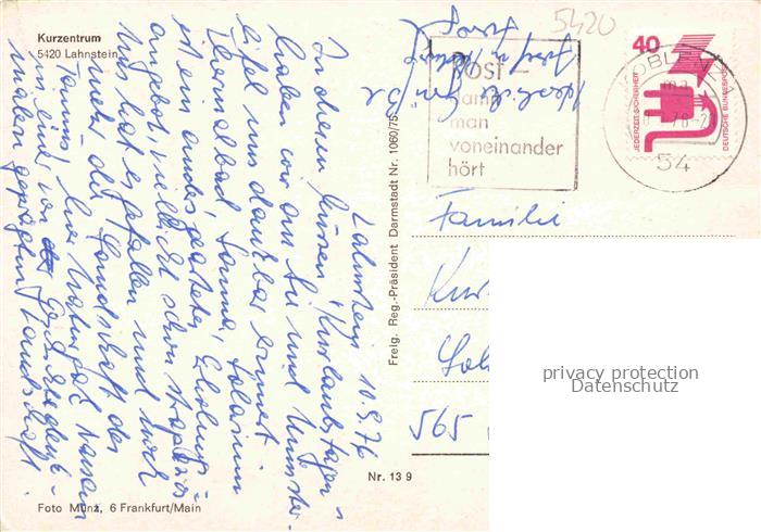 74040966 Lahnstein Rheinland-Pfalz Kurzentrum Fliegeraufnahme postalisch gelaufen Erhaltung siehe scans [WerneD78] alte Postkarte Wern Katcode 11110007141075