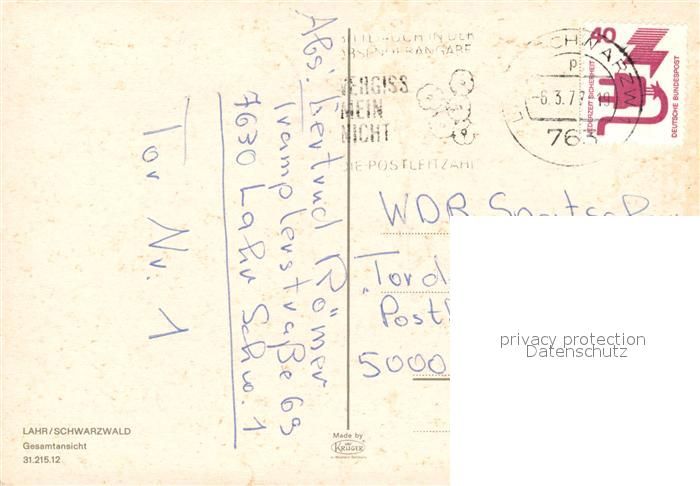 73208640 alte Postkarte Lahr Baden postalisch gelaufen Erhaltung siehe scans [NatalD47] KatCode: 11110008317065