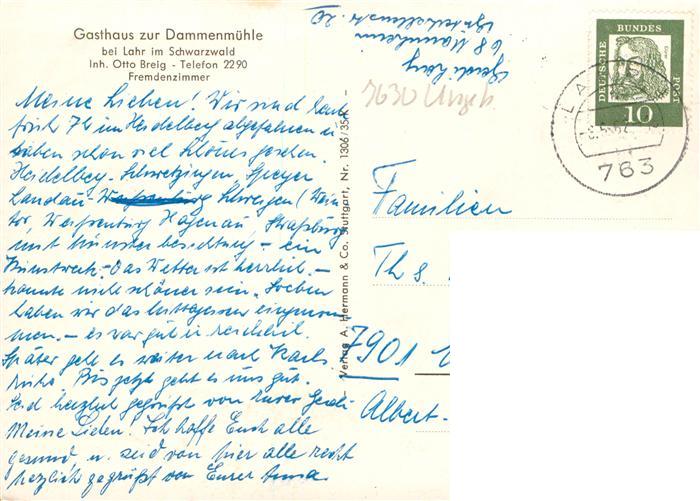 73931799 alte Postkarte Lahr Baden Gasthaus Dammenmuehle Gondelteich postalisch gelaufen Erhaltung siehe scans [WerneD78] KatCode: 11110008317065