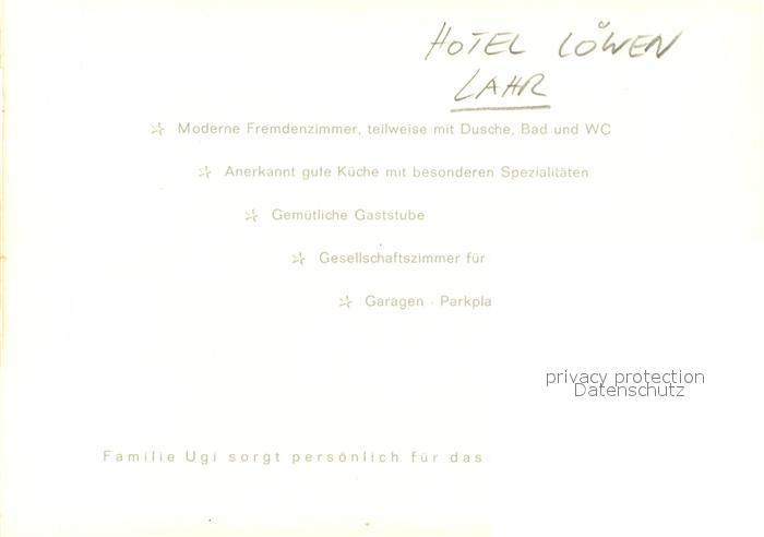 73360020 Lahr Baden Hotel Loewen Restaurant postalisch nicht gelaufen Erhaltung siehe scans [FriedD77] KatCode: 11110008317065
