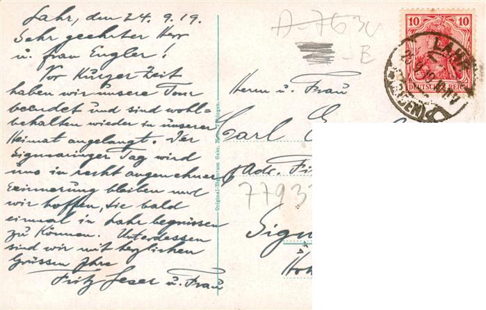 73902412 alte Postkarte Lahr Baden Partie im Stadtpark postalisch gelaufen Erhaltung siehe scans [FriedD77] KatCode: 11110008317065