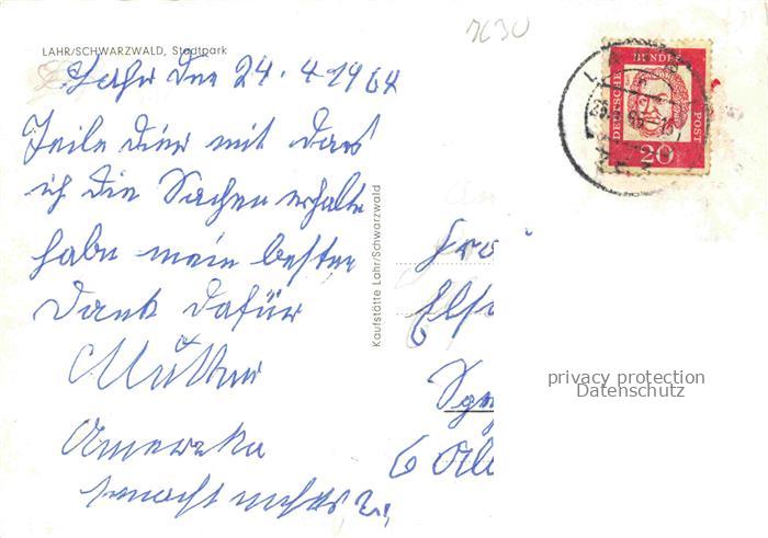 74100594 alte Postkarte LAHR Baden Stadtpark postalisch gelaufen Erhaltung siehe scans [WerneD78] KatCode: 11110008317065