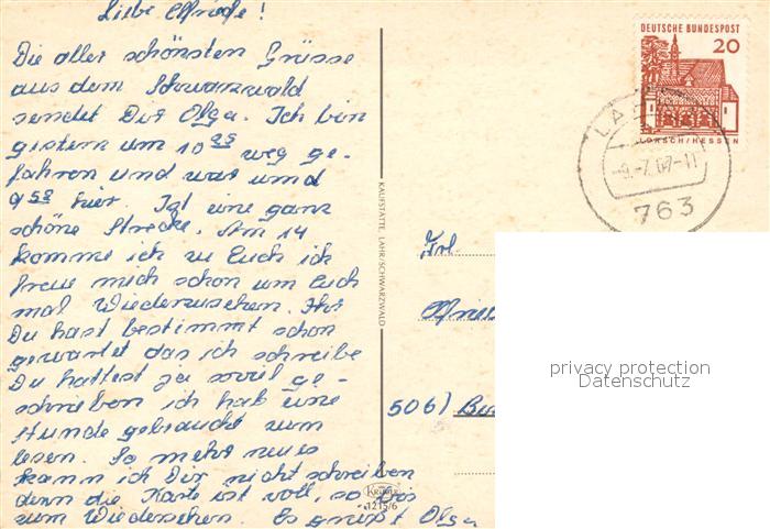 73310140 alte Postkarte Lahr Baden Teilansichten Schwarzwaldhaus Trachten Hochhaus Muehle Turm Stadtmauer postalisch gelaufen Erhaltung siehe scans [FriedD77] KatCode: 11110008317065