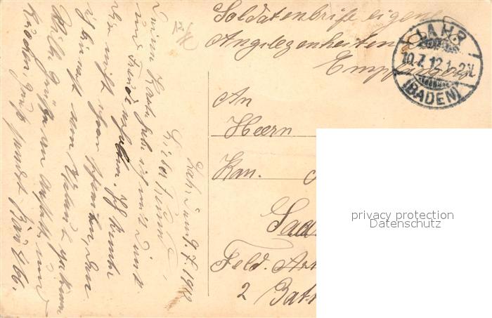 43510607 alte Postkarte Lahr Baden Urteilsplatz Soldatenbrief postalisch gelaufen Erhaltung siehe scans [FriedD77] KatCode: 11110008317065