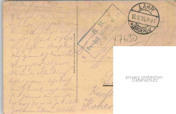 42831005 alte Postkarte Lahr Schwarzwald Artilleriekasernen postalisch gelaufen Feldpost Erhaltung siehe scans [WerneD78] KatCode: 11110008317065