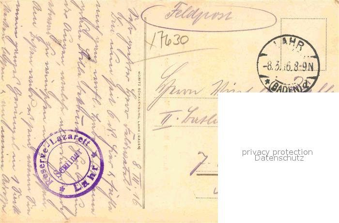 42875832 alte Postkarte Lahr Schwarzwald Artilleriekasino postalisch gelaufen Feldpost Erhaltung siehe scans [KathaD81] KatCode: 11110008317065