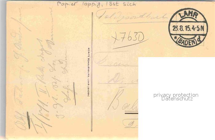 42880418 alte Postkarte Lahr Schwarzwald Artilleriekasino postalisch gelaufen Feldpost Erhaltung siehe scans [KathaD81] KatCode: 11110008317065