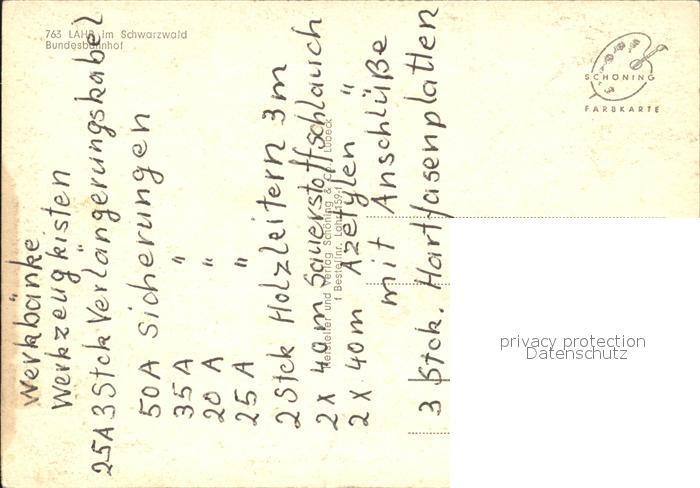 72127598 Lahr Schwarzwald Bahnhof postalisch nicht gelaufen KatCode: 11110008317065