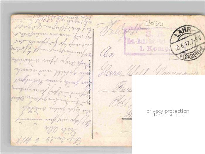 42831154 alte Postkarte Lahr Schwarzwald Garnisonlazarett postalisch gelaufen Feldpost Erhaltung siehe scans [WerneD78] KatCode: 11110008317065