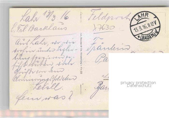 42831024 alte Postkarte Lahr Schwarzwald Kaiserstrasse postalisch gelaufen Feldpost Erhaltung siehe scans [WerneD78] KatCode: 11110008317065