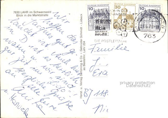 72241829 alte Postkarte Lahr Schwarzwald Marktstrasse postalisch gelaufen Erhaltung siehe scans KatCode: 11110008317065