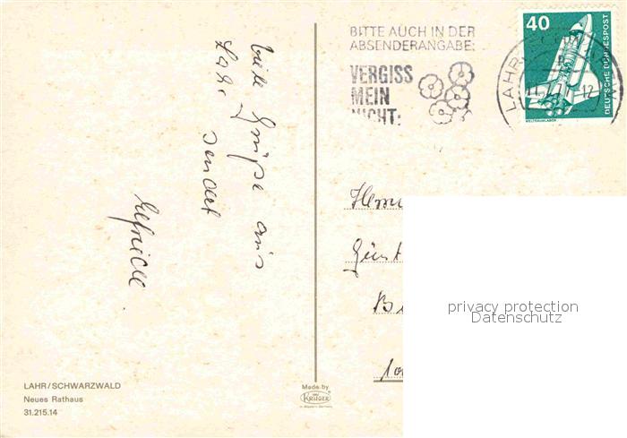 72843552 alte Postkarte Lahr Schwarzwald Neues Rathaus postalisch gelaufen Erhaltung siehe scans [LiesaD40] KatCode: 11110008317065