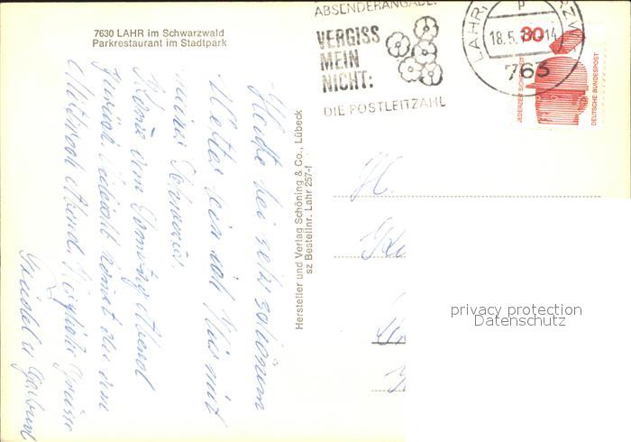 71830903 alte Postkarte Lahr Schwarzwald Parkrestaurant Stadtpark postalisch gelaufen Erhaltung siehe scans KatCode: 11110008317065