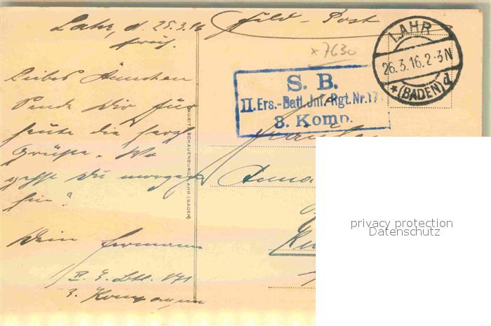 42830403 alte Postkarte Lahr Schwarzwald Reichswaisenhaus postalisch gelaufen Feldpost Erhaltung siehe scans [WerneD78] KatCode: 11110008317065