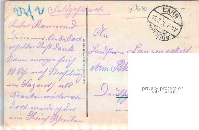 42830402 alte Postkarte Lahr Schwarzwald Schillerstrasse postalisch gelaufen Feldpost Erhaltung siehe scans [WerneD78] KatCode: 11110008317065