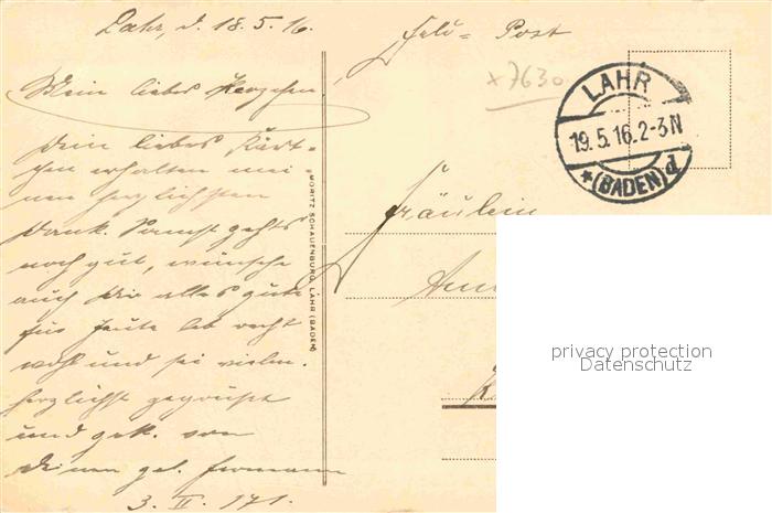 42830205 alte Postkarte Lahr Schwarzwald Schillerstrasse postalisch gelaufen Feldpost Erhaltung siehe scans [WerneD78] KatCode: 11110008317065