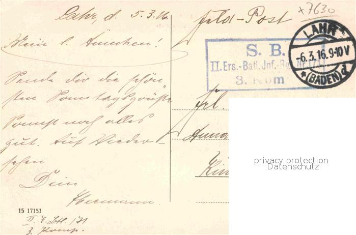 42875841 alte Postkarte Lahr Schwarzwald Schillerstrasse postalisch gelaufen Feldpost Erhaltung siehe scans [KathaD81] KatCode: 11110008317065